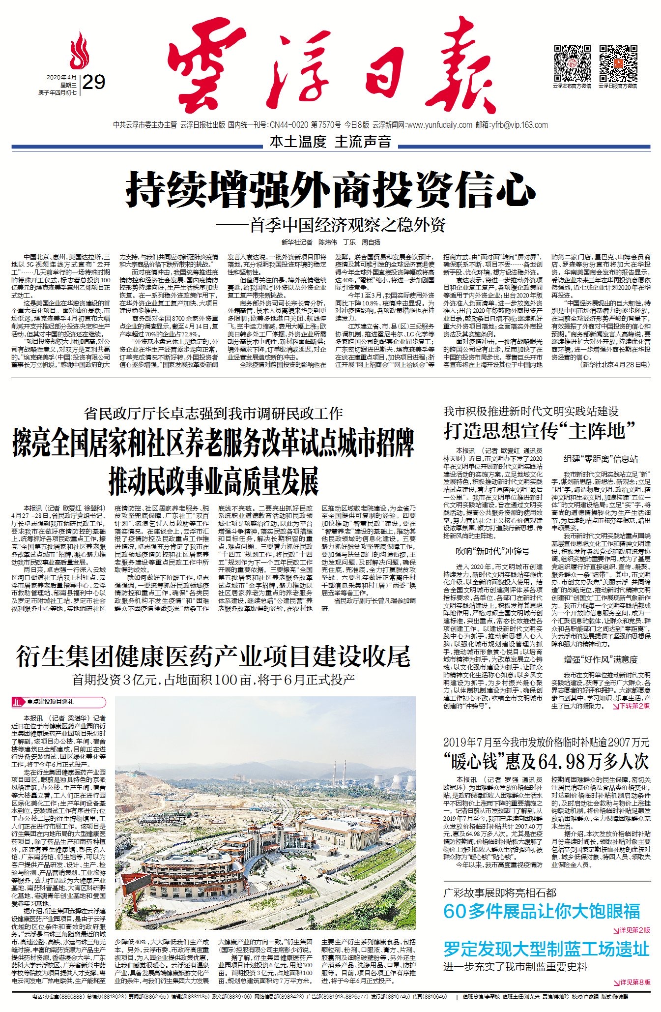 衍生集團(tuán)選擇在云浮建設(shè)健康醫(yī)藥產(chǎn)業(yè)園項(xiàng)目,是由于云浮優(yōu)越的區(qū)位條件和高效的政府服務(wù)。“云浮是與珠三角距離最近的城市,高速公路、高鐵、水運(yùn)與珠三角無(wú)縫對(duì)接,豐富的南藥資源為產(chǎn)品生產(chǎn)提供原料,香港浸會(huì)大學(xué)、廣東藥科大學(xué)云浮校區(qū)、廣東省新興中藥學(xué)校等院校為項(xiàng)目提供人才支撐,粵電云河發(fā)電廠熱電聯(lián)供,生產(chǎn)能耗至少降低40%,大大降低我們生產(chǎn)成本。另外,云浮市委、市政府高度重視項(xiàng)目,為入園企業(yè)提供政策優(yōu)惠,讓我們感覺(jué)很暖心。云浮還有溫泉產(chǎn)業(yè),具備發(fā)展高端健康旅游文化產(chǎn)業(yè)的條件,與我們衍生集團(tuán)大力發(fā)展大健康產(chǎn)業(yè)的方向一致。”衍生集團(tuán)(國(guó)際)控股有限公司主席彭少衍說(shuō)。